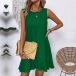 This is a playful and stylish mini dress that exudes effortless charm and femininity. The crew neck, sleeveless and self-tie backless design offers a classic and versatile style, perfect for a laid-back yet trendy look.