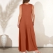 Casual Crew Neck Sleeveless Side Patch Pockets Loose Jumpsuit