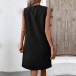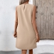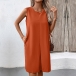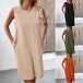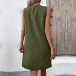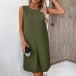 Casual Crew Neck Sleeveless Side Pockets Mini Dress
