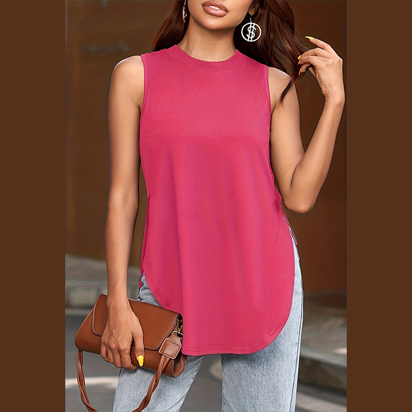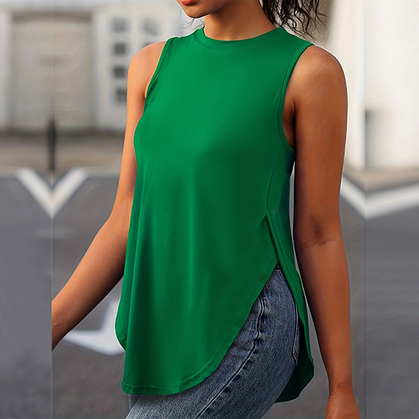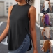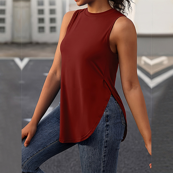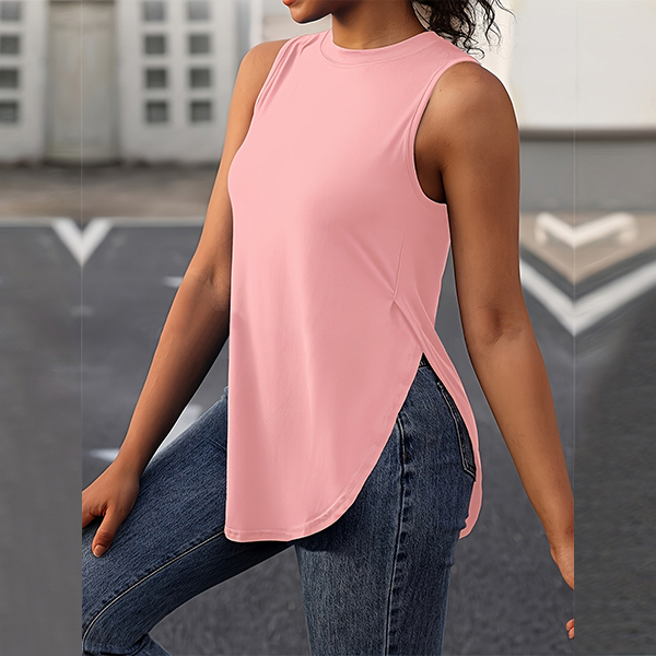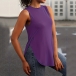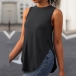 Casual Crew Neck Sleeveless Side Slit Workout Shirt