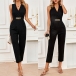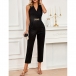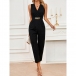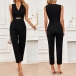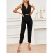 Casual Cross Collar Jumpsuit with Gold Chain Accent