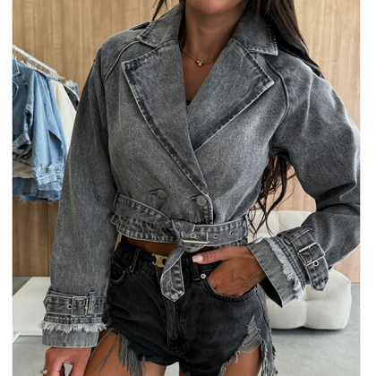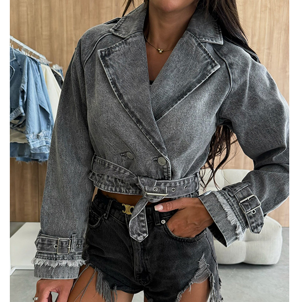 Casual Denim Jacket with Suit Collar and Washed Finish