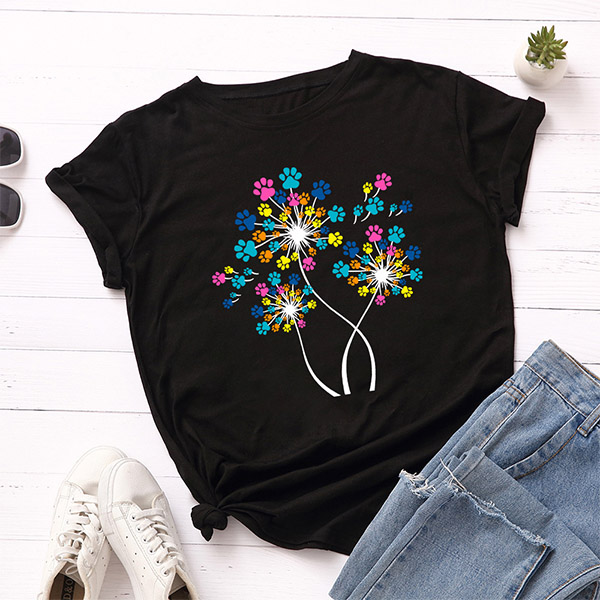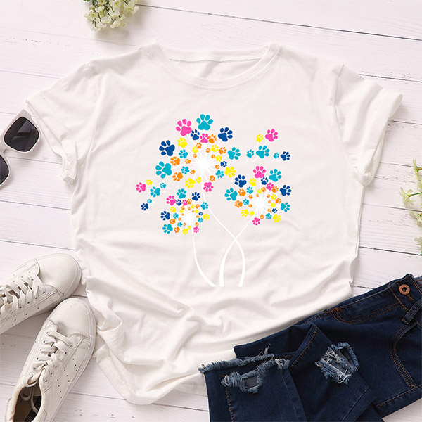 Casual Dog Paw Floral Printed Shirt