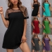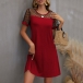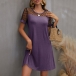 Casual Dot Printed Gauze Spliced Round Neck Short Sleeve Mini Dress