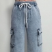 These relaxed jeans feature comfortable drawstring styling with elastic waist construction and functional side patch pockets for contemporary casual comfort. The loose silhouette offers comfortable movement and laid-back contemporary appeal. Pair with casual tops and sneakers for relaxed everyday appeal.