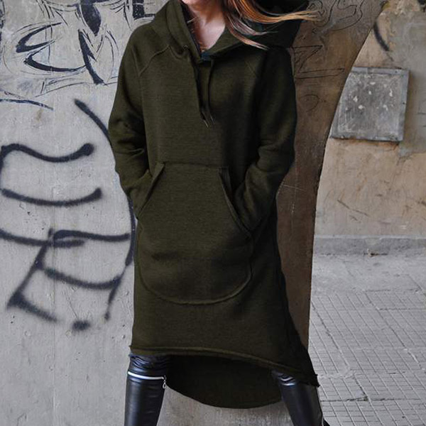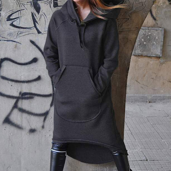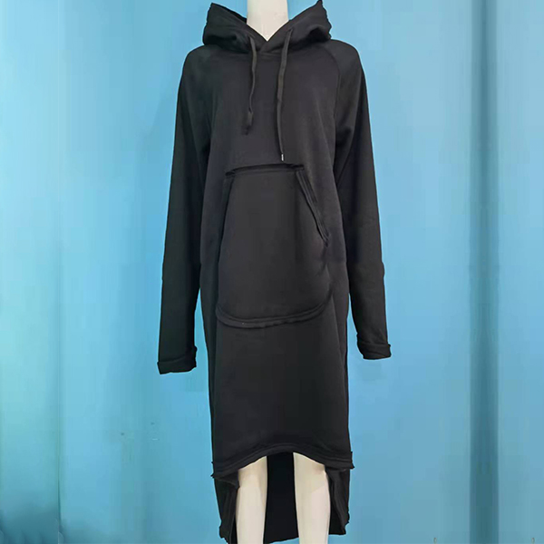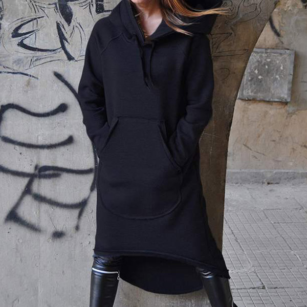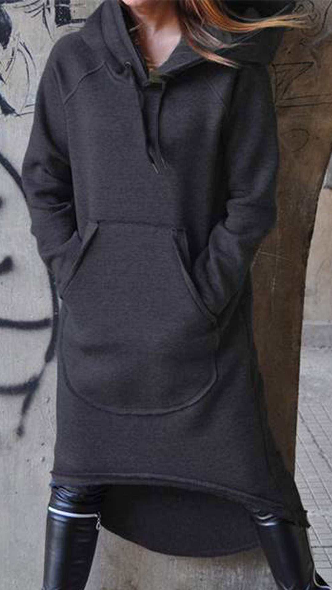Casual Drawstring Hooded Long Sleeve Kangaroo Pockets High-low Hemline Sweatshirt Dress