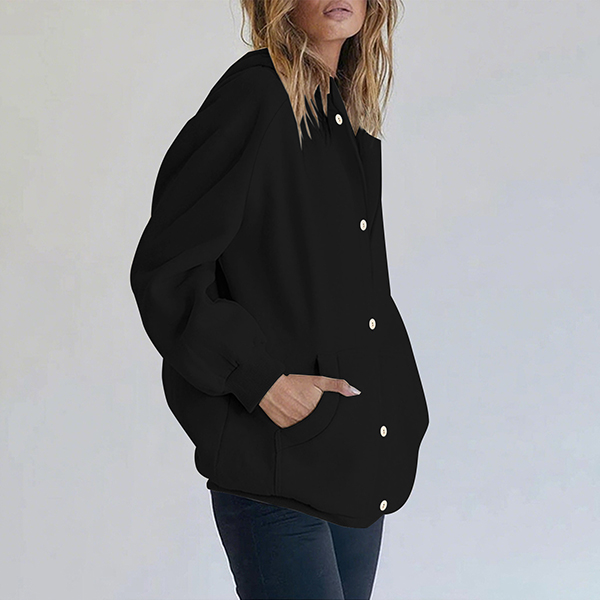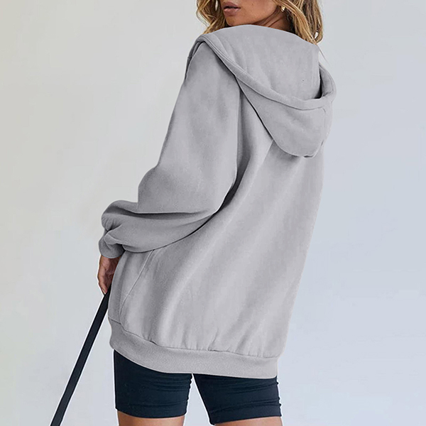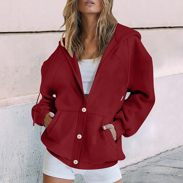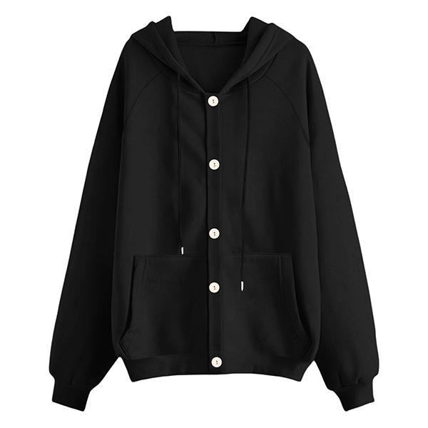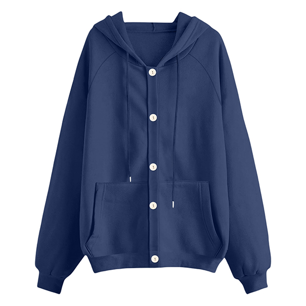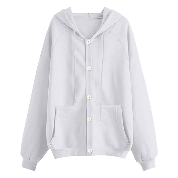 Casual Drawstring Hooded Long Sleeve Patch Pockets Sweatshirt Jacket
