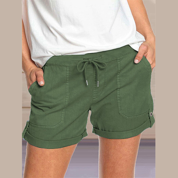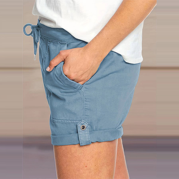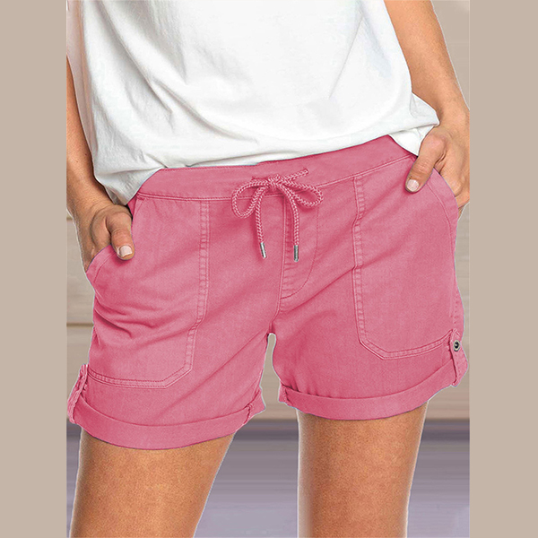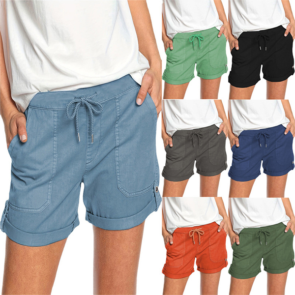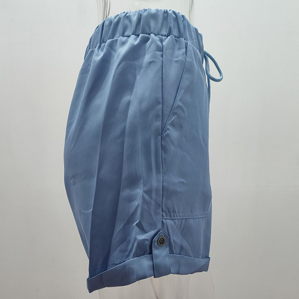 Casual Drawstring Waist Slant Pockets Shorts