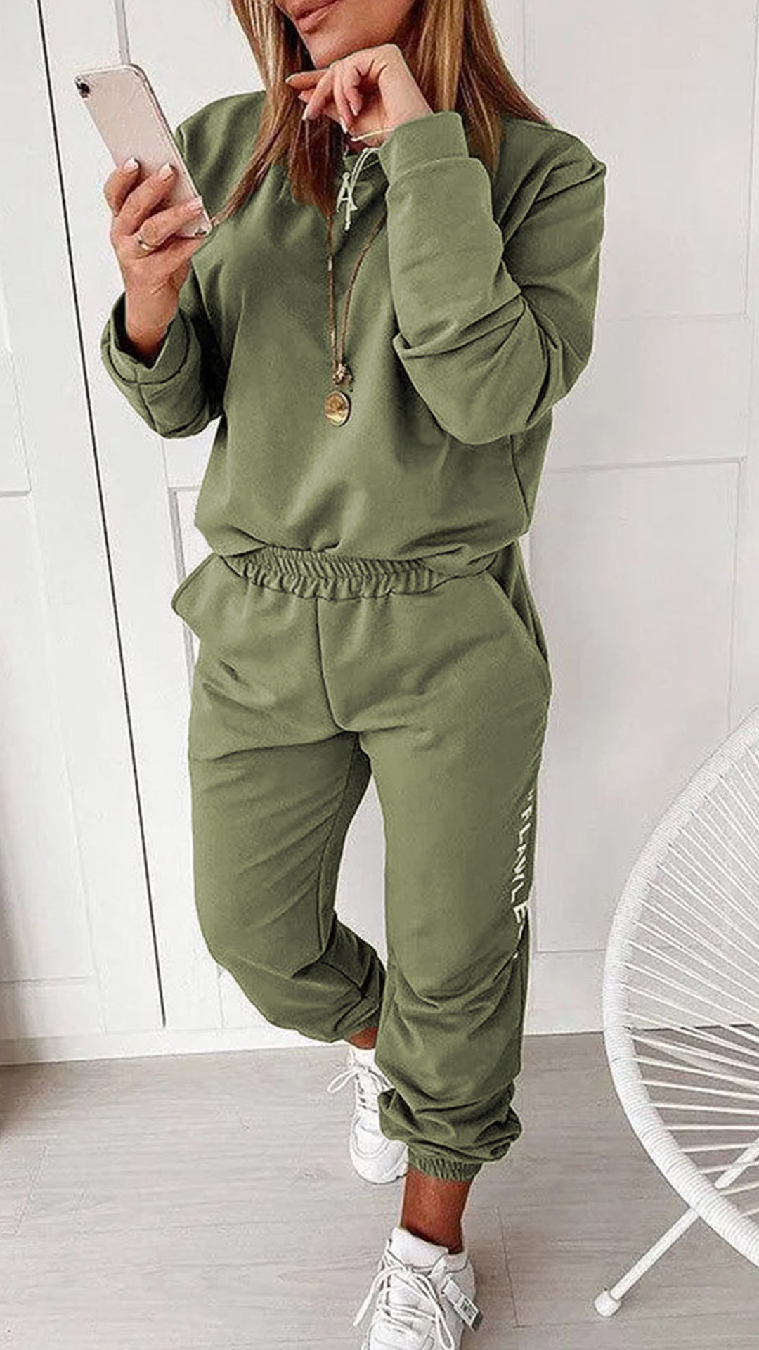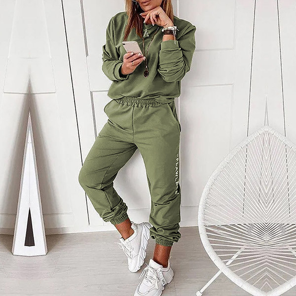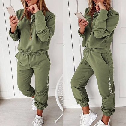 Casual FLAWLESS- Letter Printed Two-piece Set Consist of Sweatshirt and Sweatpants