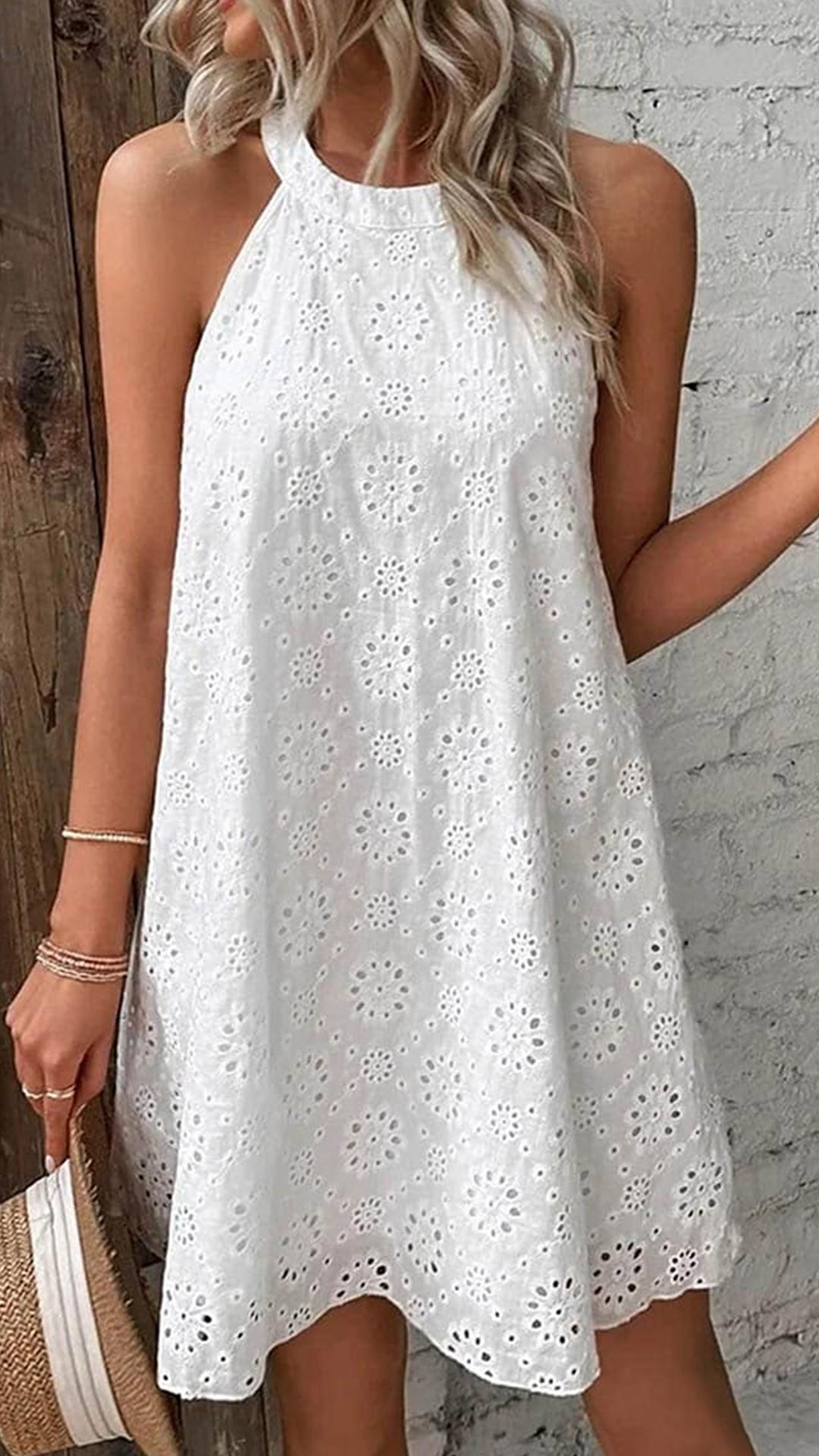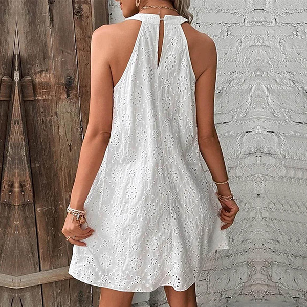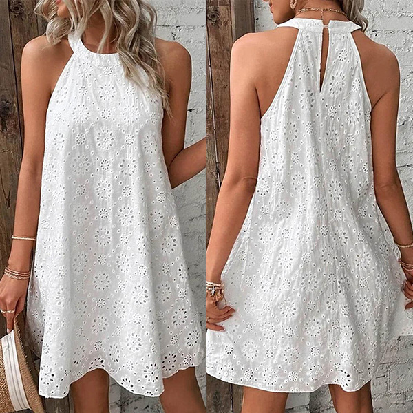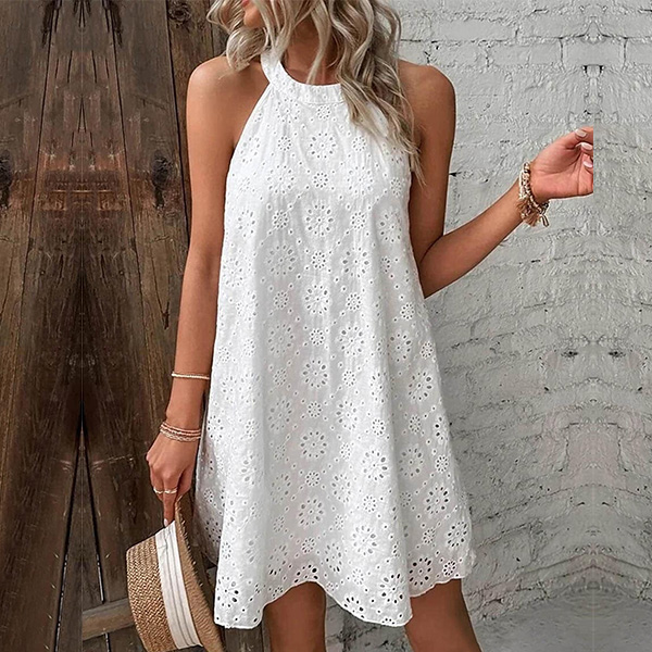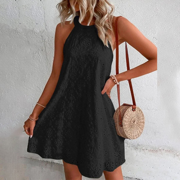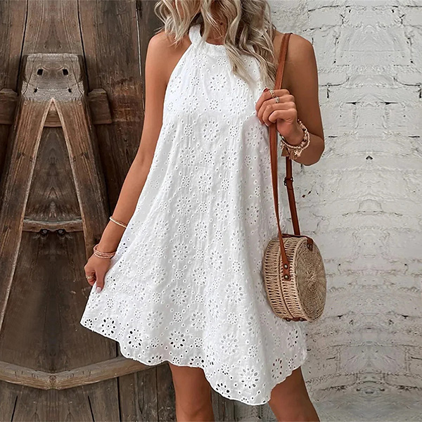 This dress features a beautiful floral hollow-out design that adds a touch of charm and elegance to the overall look. The halterneck design showcases your shoulders and adds a flirty and playful vibe to the dress.Casual Floral Hollow-out Halterneck Sleeveless Mini Dress