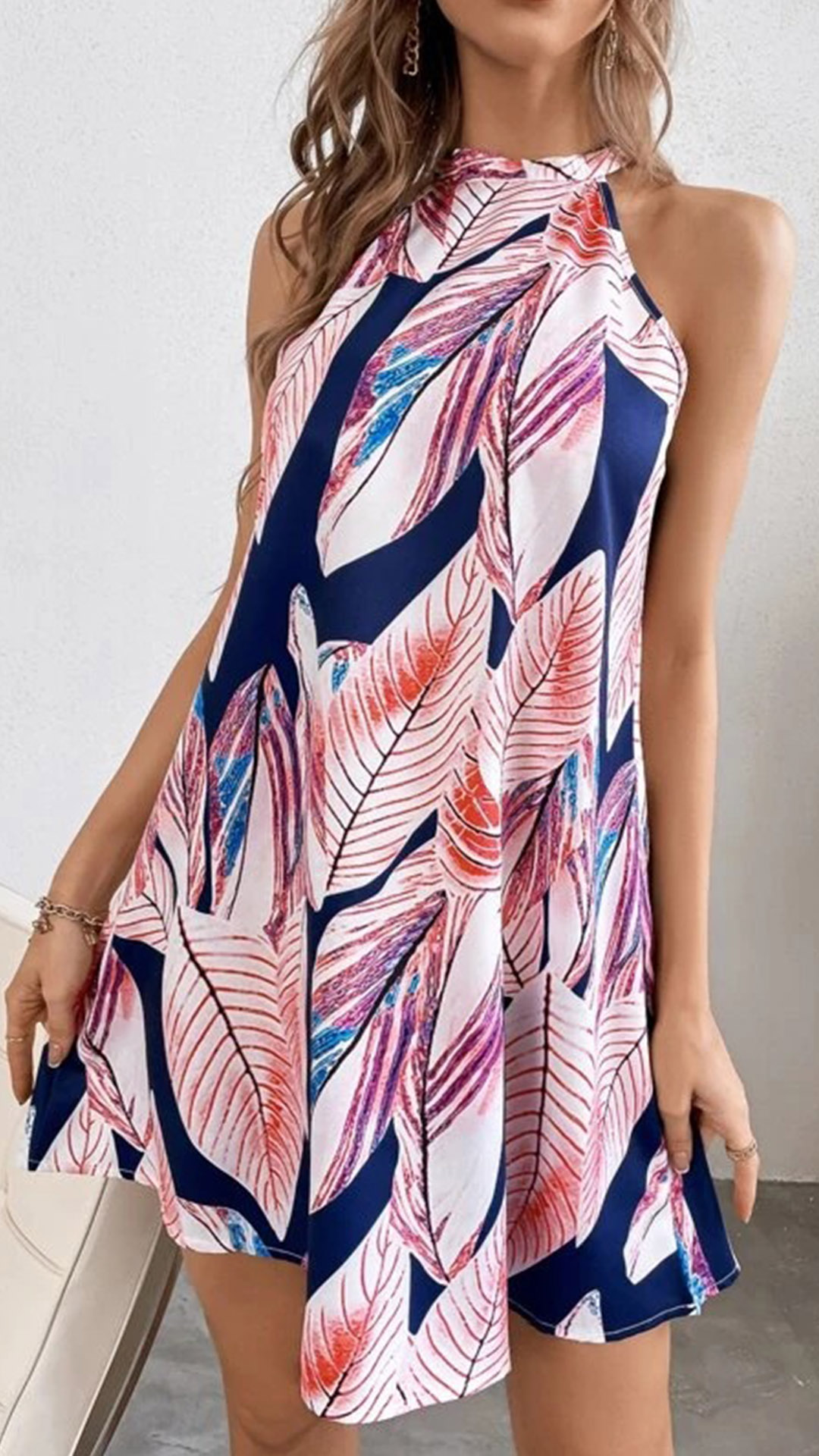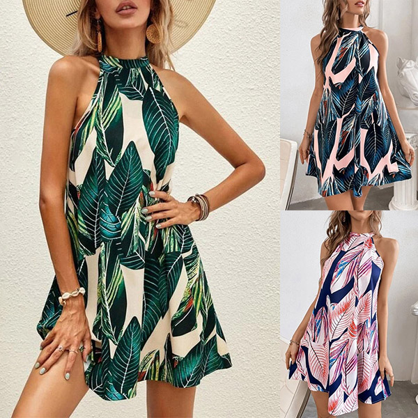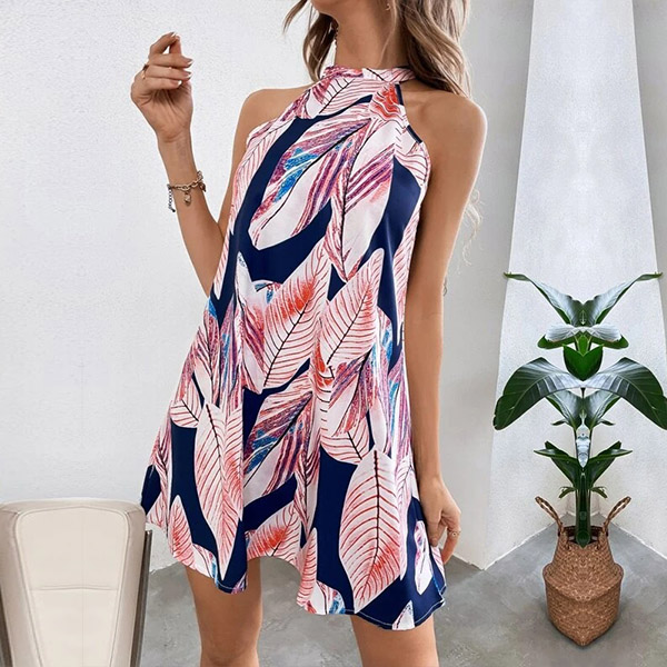 Casual Floral Printed Halterneck Mini Dress