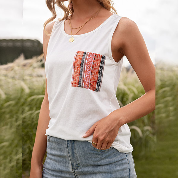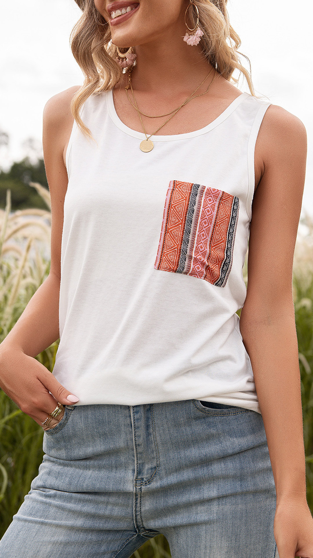 This casual tank top is perfect for a day out! It features a floral print patch pockets, and a racerback design. Made from a lightweight fabric, it's perfect for warm weather.