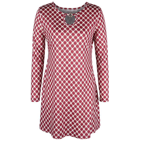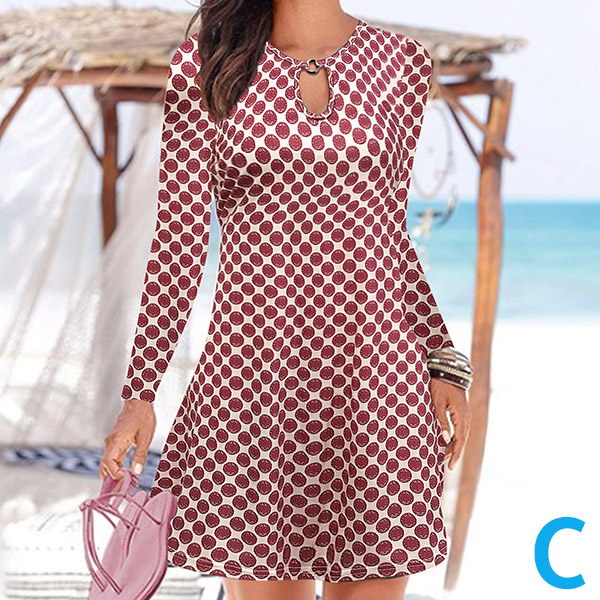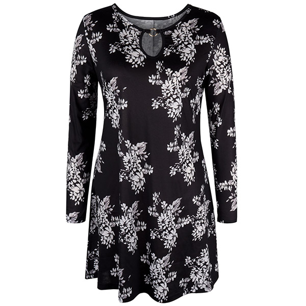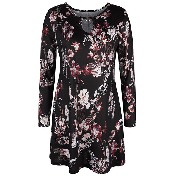 This dress is perfect for a day spent out with friends or family. The floral print is eye-catching and the round neckline with front cutout is flattering. Hope you like it.