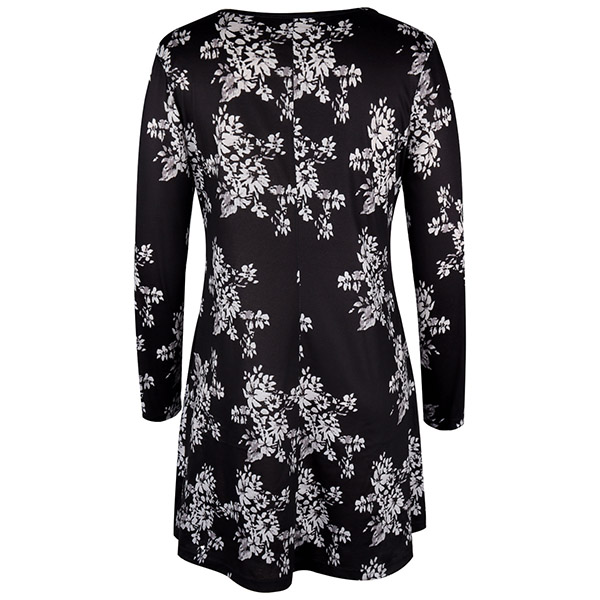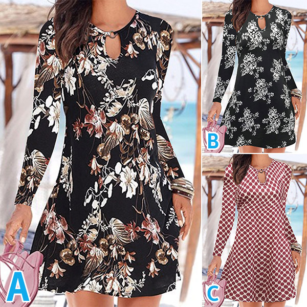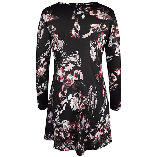Casual Floral Printed Round Neck Long Sleeve Dress