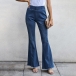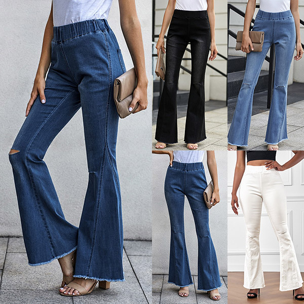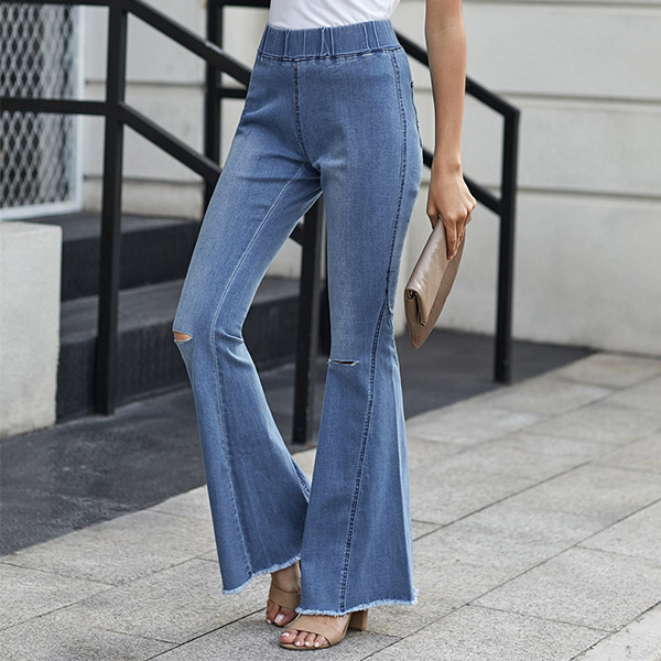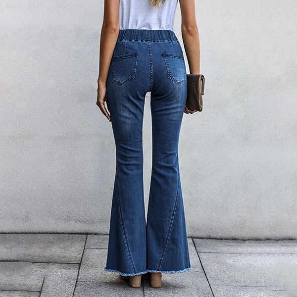 Casual Frayed Wide-leg Elastic Waist Denim Jeans