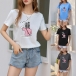 Casual Girl Printed Crew Neck Short Sleeve Shirt
