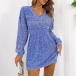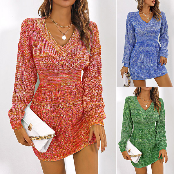 This knitted dress is perfect for any day or night out! The dress is made of a soft and comfortable material, and features a V-neckline, long sleeves, and a gradient color design. The dress is sure to keep you comfortable and stylish all day long!