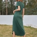 Casual Green Dress with Curve Hem Short Sleeve for Daily Wear