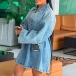 Casual Half-zipper Stand Collar Long Sleeve Loose Denim Mini Dress