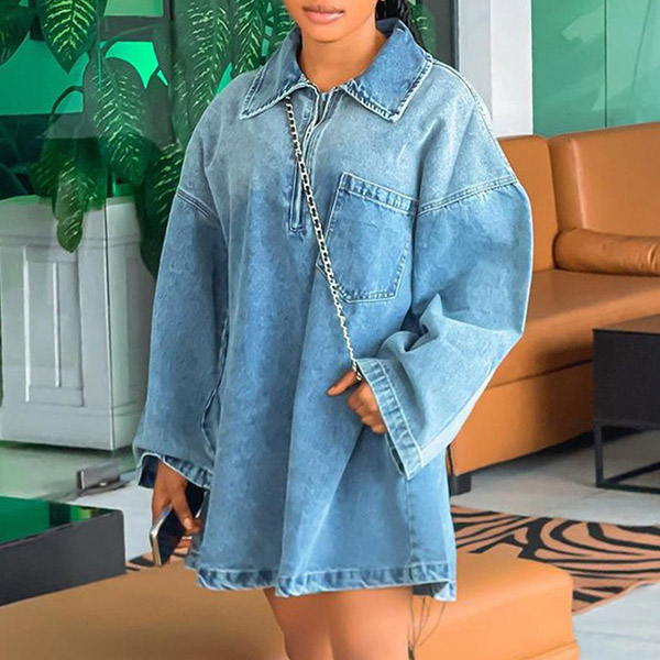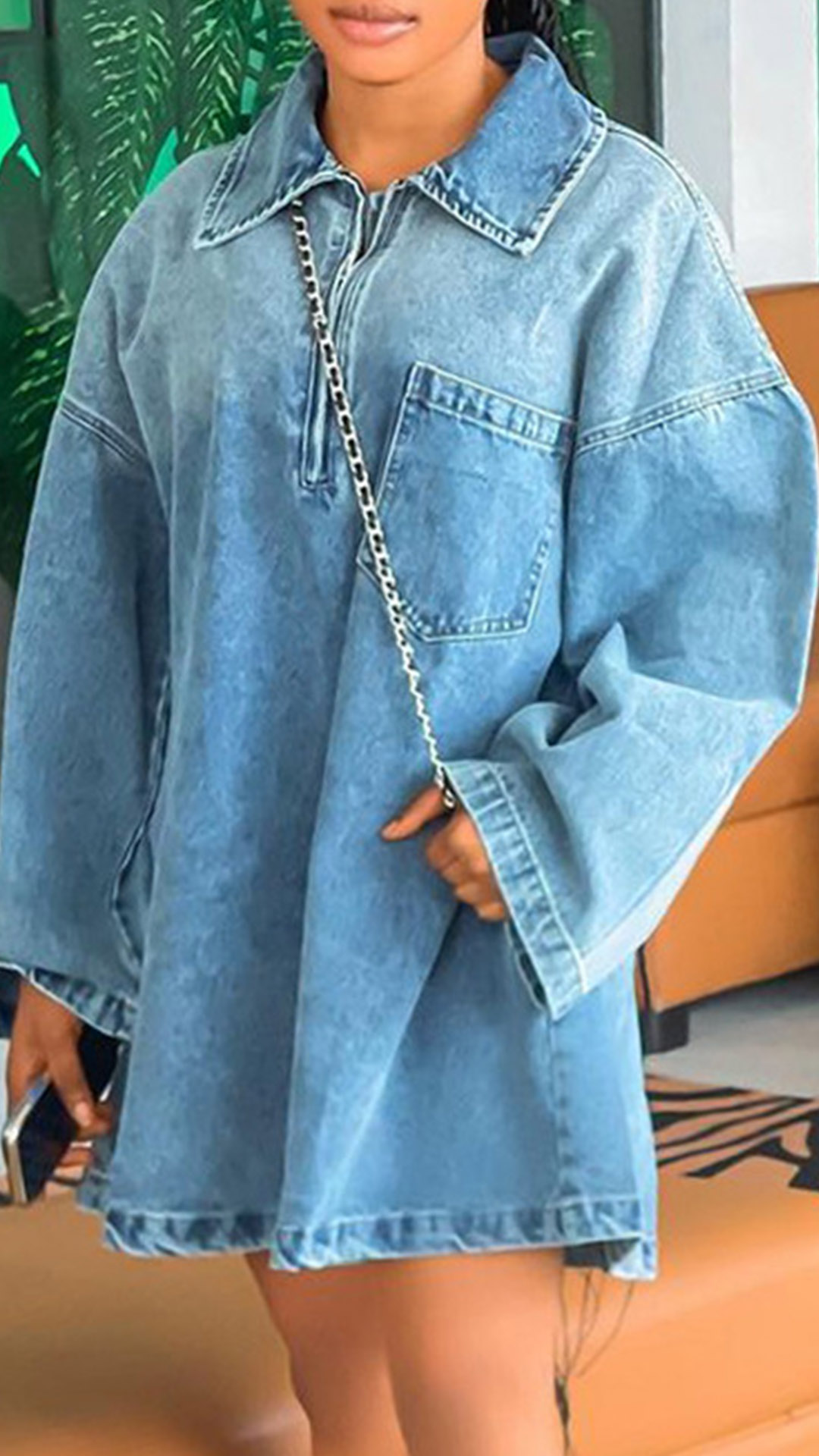 This loose mini denim dress is a stylish and versatile piece that offers a modern twist on a classic denim dress. The half-zipper detailing and stand collar add a contemporary and edgy touch to the dress, while the long sleeves provide coverage and comfort. The loose fit of the dress gives it a relaxed and casual vibe, perfect for everyday wear. Wanna have a try?