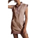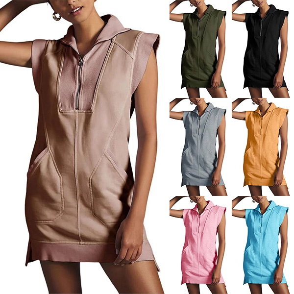 This dress features a half-zipper closure, stand collar neckline, sleeveless silhouette and side patch pockets for a casual and fashion look.