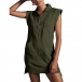 Casual Half-zipper Stand Collar Sleeveless Side Patch Pockets Dress