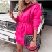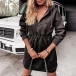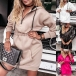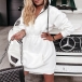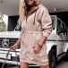 Casual Half-zipper V-neck Long Sleeve Elastic Waist Drawstring Hooded Sweatshirt Dress