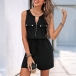 Casual Half-zipper V-neck Sleeveless Elastic Waist Romper