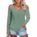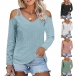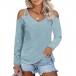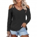 Casual Hollow Out Open-shoulder V-neck Long Sleeve Shirt