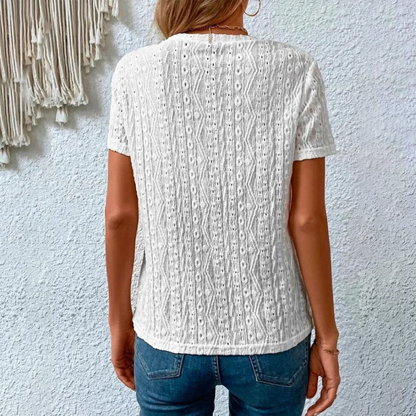 Casual Hollow Out Round Neck Short Sleeve Shirt