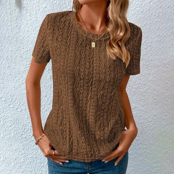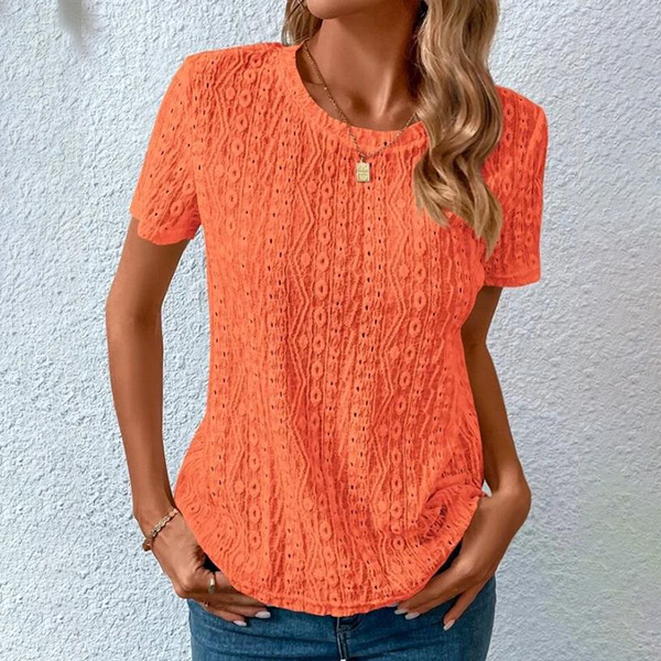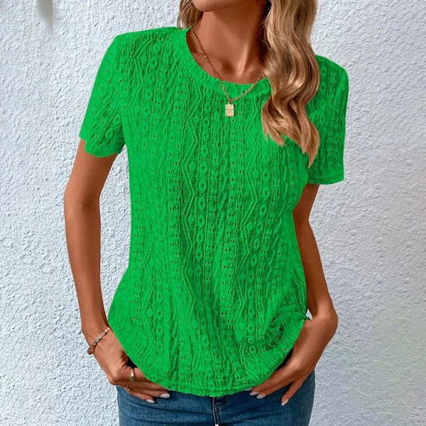 This shirt is perfect for those who appreciate casual yet stylish fashion. With its hollow out details, round neckline, and short sleeves, it offers a trendy and laid-back look.