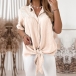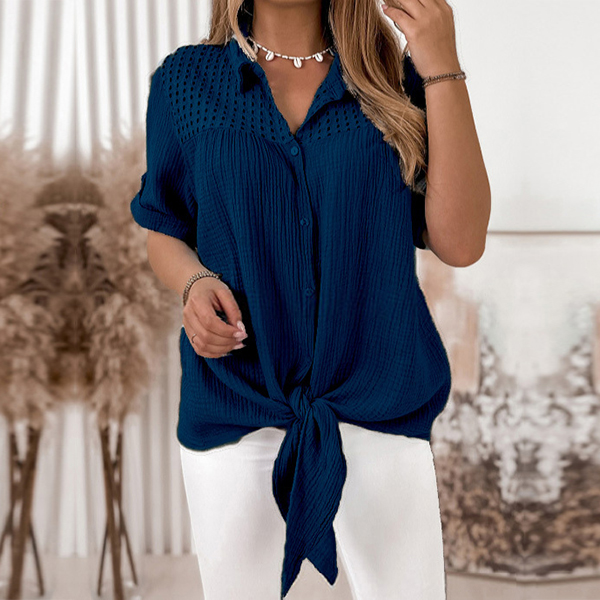 Crafted with high-quality fabric, this shirt offers both comfort and style. The hollowout design adds a unique and eye-catching element to the shirt, creating a visually appealing and trendy look. The self-tie detail adds a touch of femininity and allows you to adjust and personalize the fit of the shirt. Wanna have one?