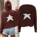 This casual hooded sweater features kangaroo pockets, long sleeves, and a black star pattern, creating a stylish and laid-back look. Pair it with leggings or jeans for a casual and relaxed outfit.