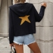 Casual Kangaroo Pockets Long Sleeve Black Star Pattern Hooded Sweater