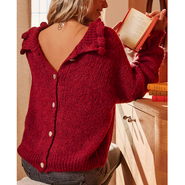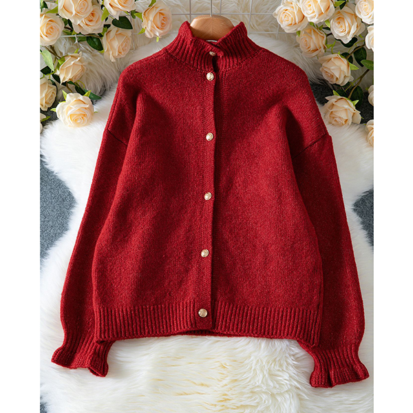 Fashion Mock Neck Long Sleeve Back Button Sweater