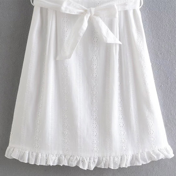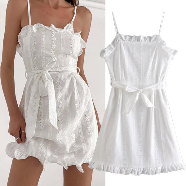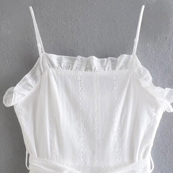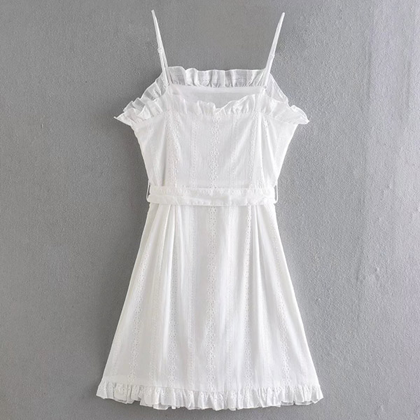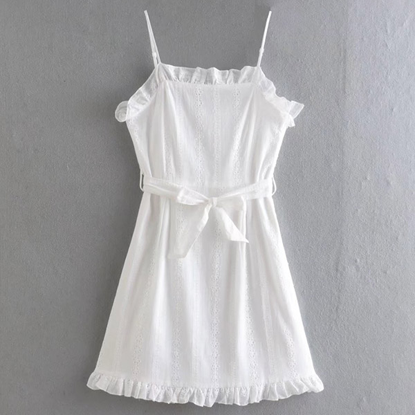 Casual Lace Embroider Ruffle Self-tie Slip Dress