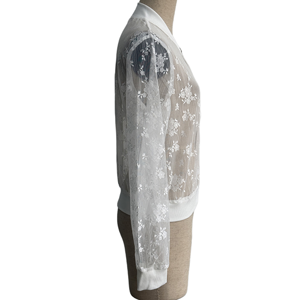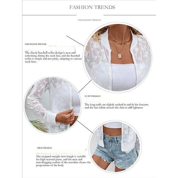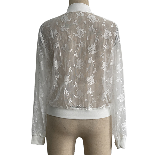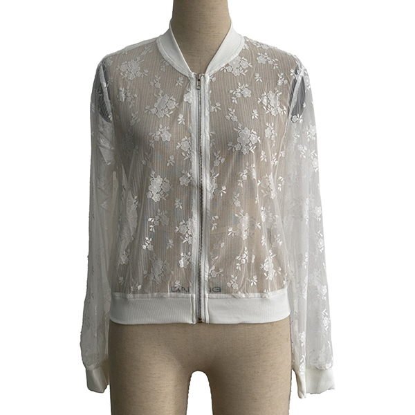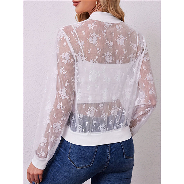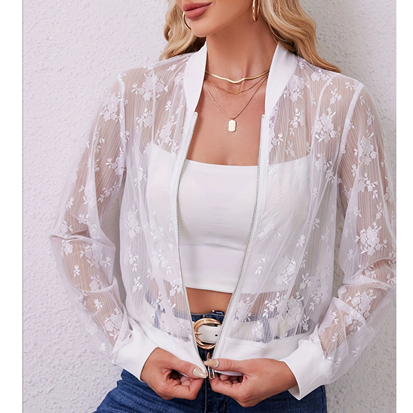 Casual Lace Panel Jacket featuring Front Zip Closure