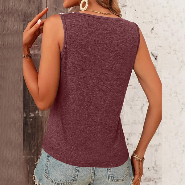 Casual Lace Spliced Buttoned Sleeveless Shirt