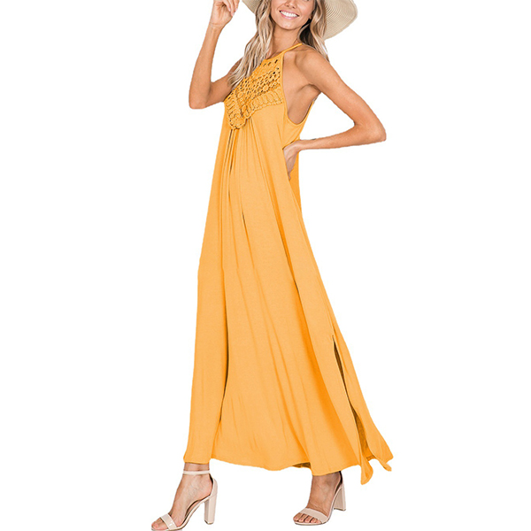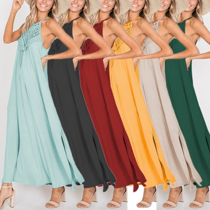 Casual Lace Spliced Halter Neck Maxi Dress