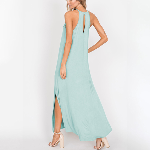 Casual Lace Spliced Halter Neck Maxi Dress