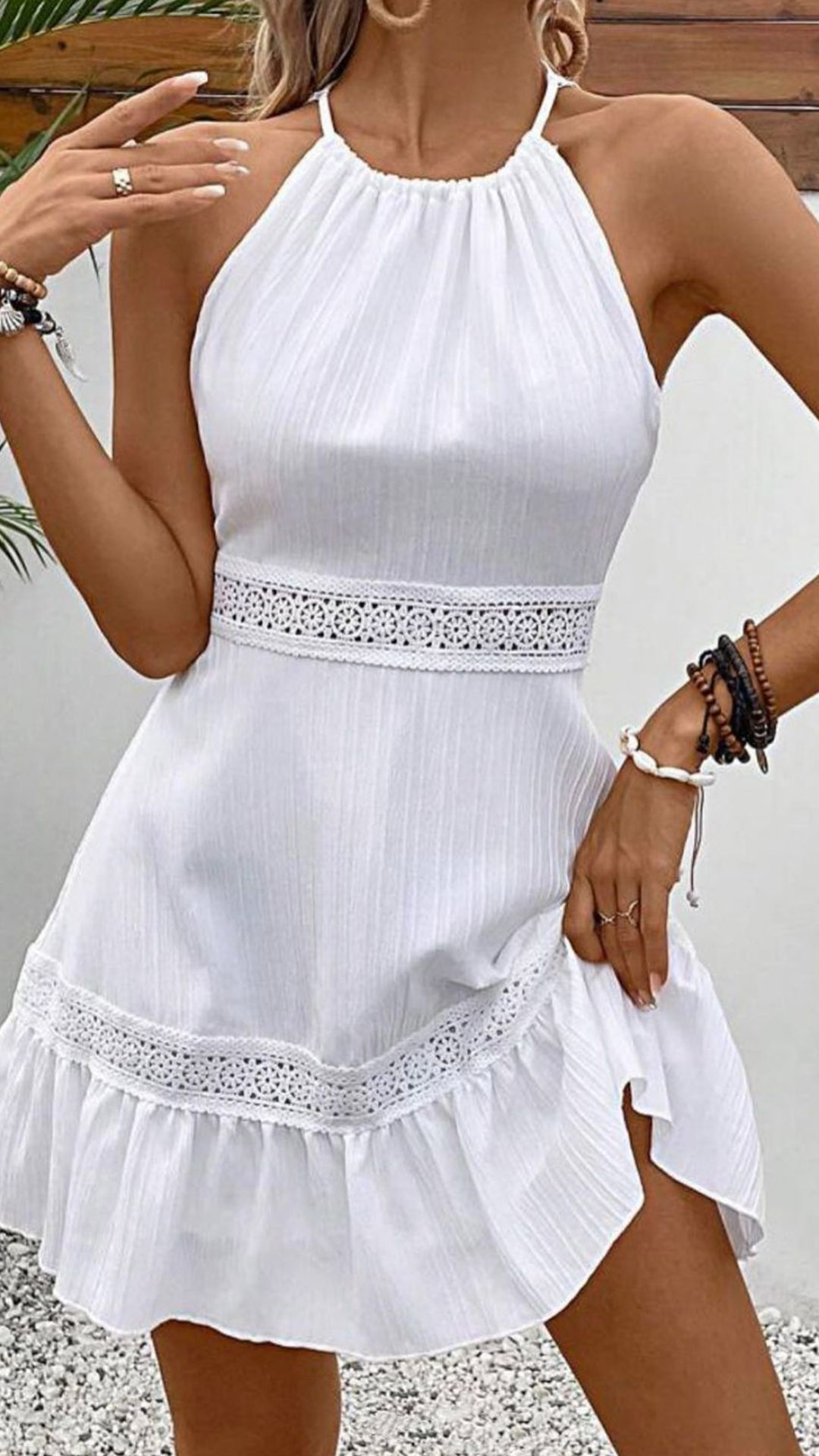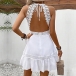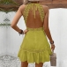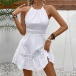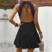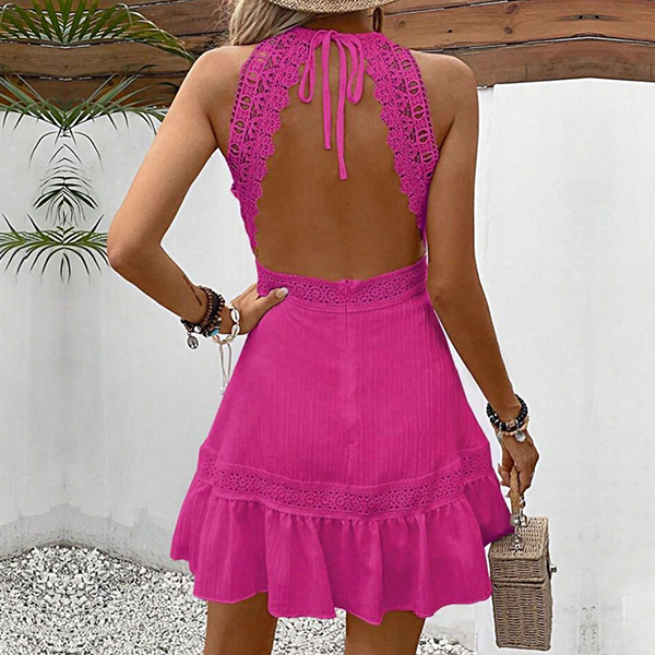 Casual Lace Spliced Halterneck Backless Sleeveless Mini Dress