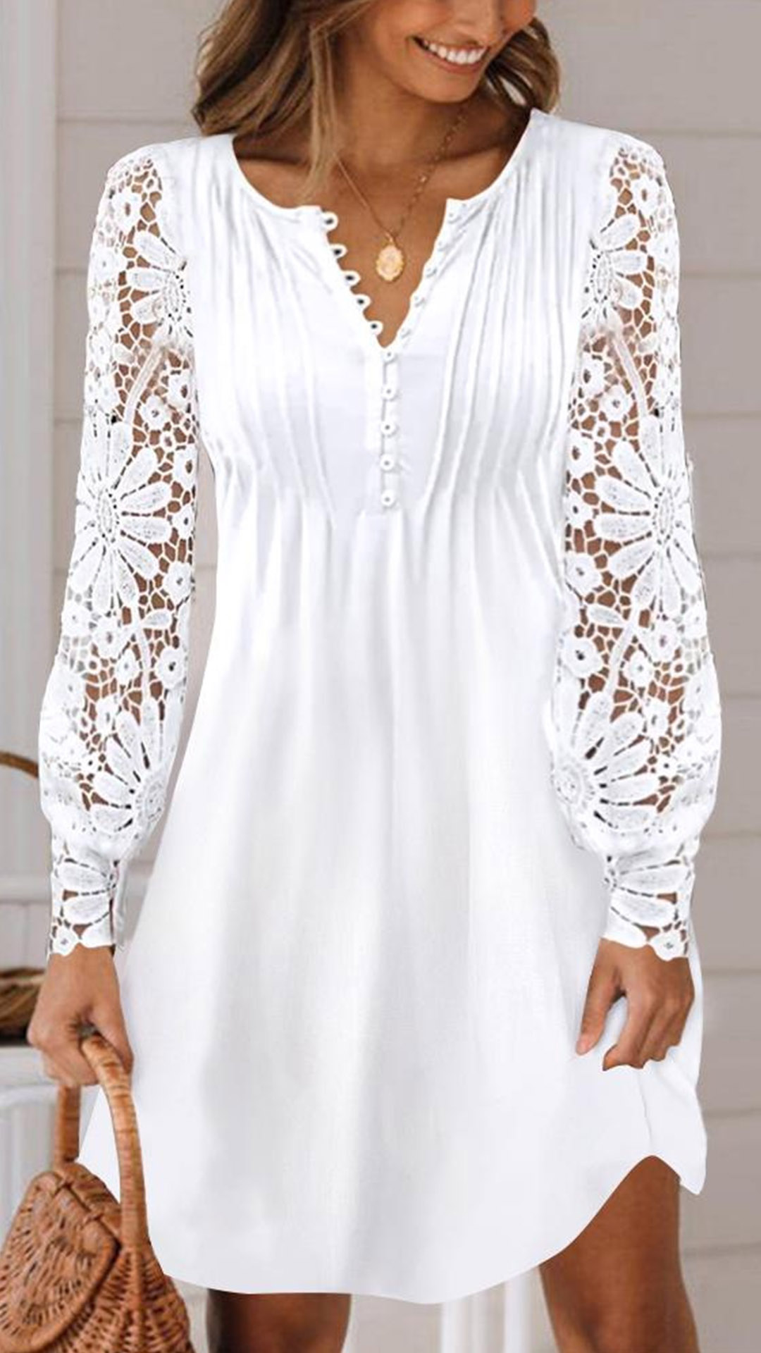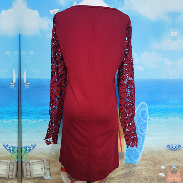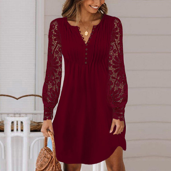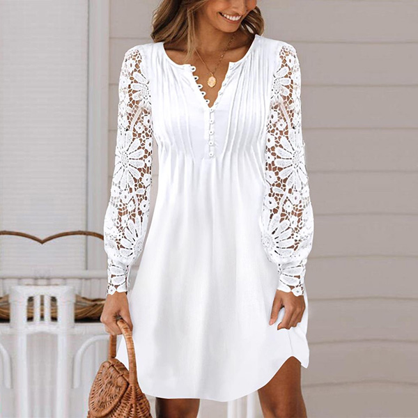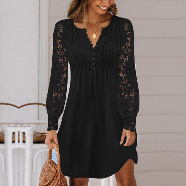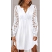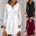 Casual Lace Spliced Long Sleeve V-neck Mini Dress