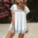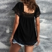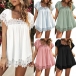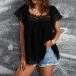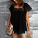 Casual Lace Spliced Scoop Neck Short Sleeve Shirt