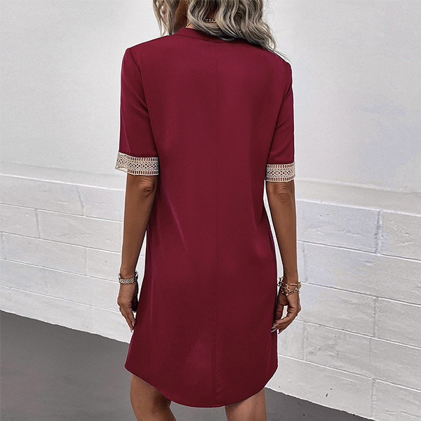 Casual Lace Spliced Short Sleeve V-neck Mini Dress