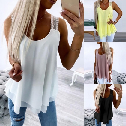 Casual Lace Spliced Shoulder Strap Sleeveless Shirt