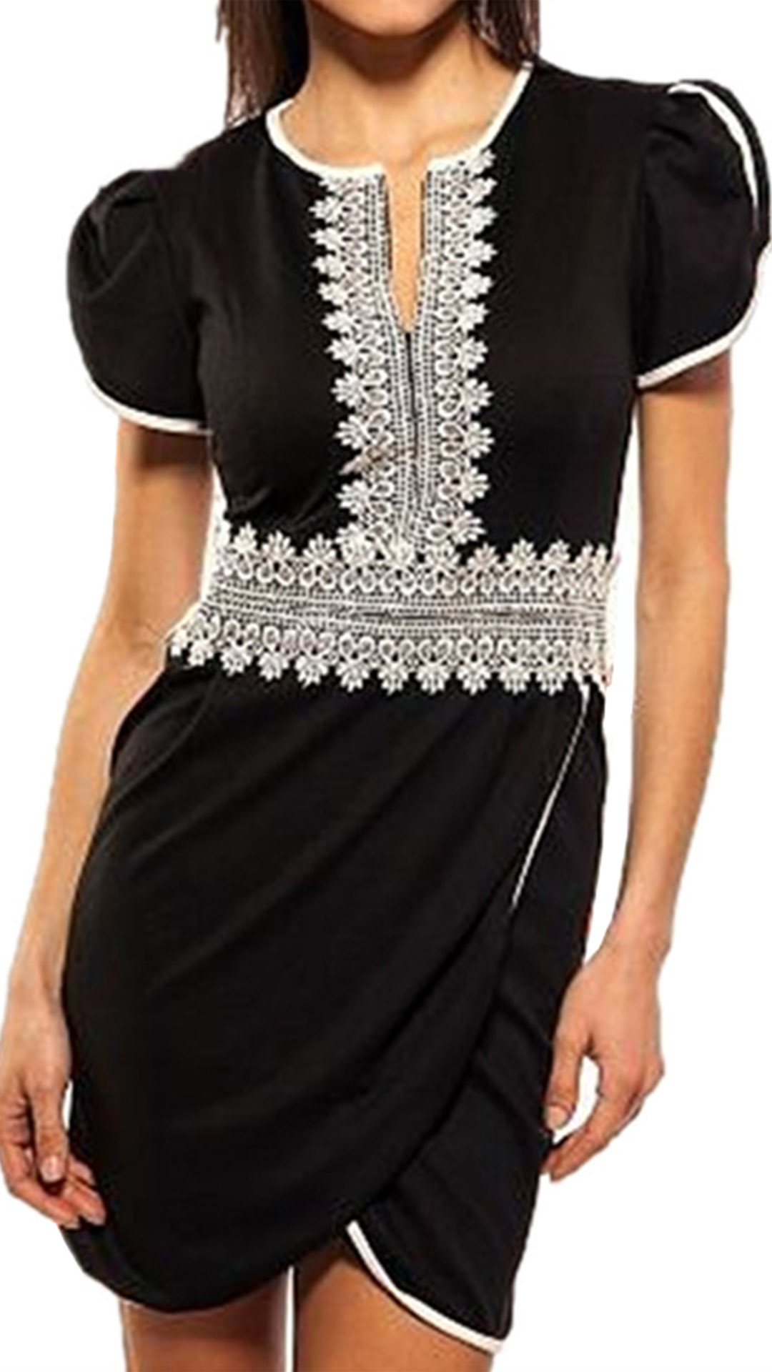 Look at this dress! The lace spliced detail and v-neck neckline are sexy and flattering, while the short sleeves and irregular hemline keep it casual. Wanna have a try?