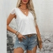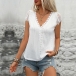 Casual Lace Spliced V-neck Cap Sleeve Shirt
