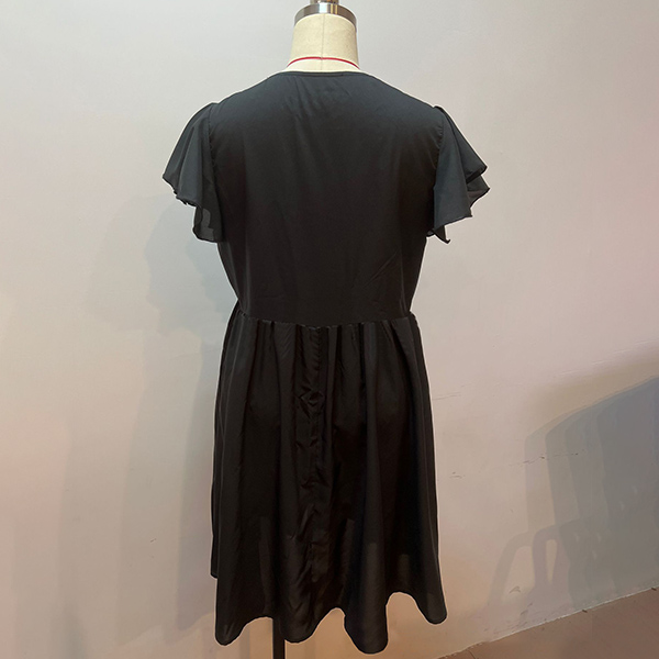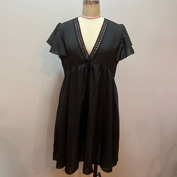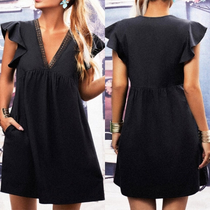 Casual Lace Spliced V-neck Ruffle Sleeve Mini Dress