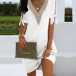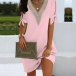 Casual Lace Spliced V-neck Short Sleeve Summer Dress