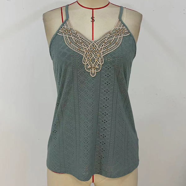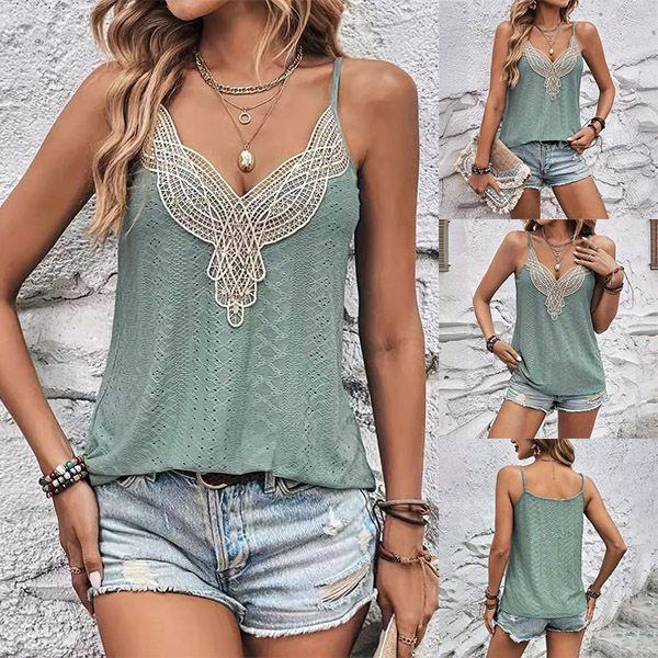 Casual Lace Spliced V-neck Sleeveless Cami Shirt